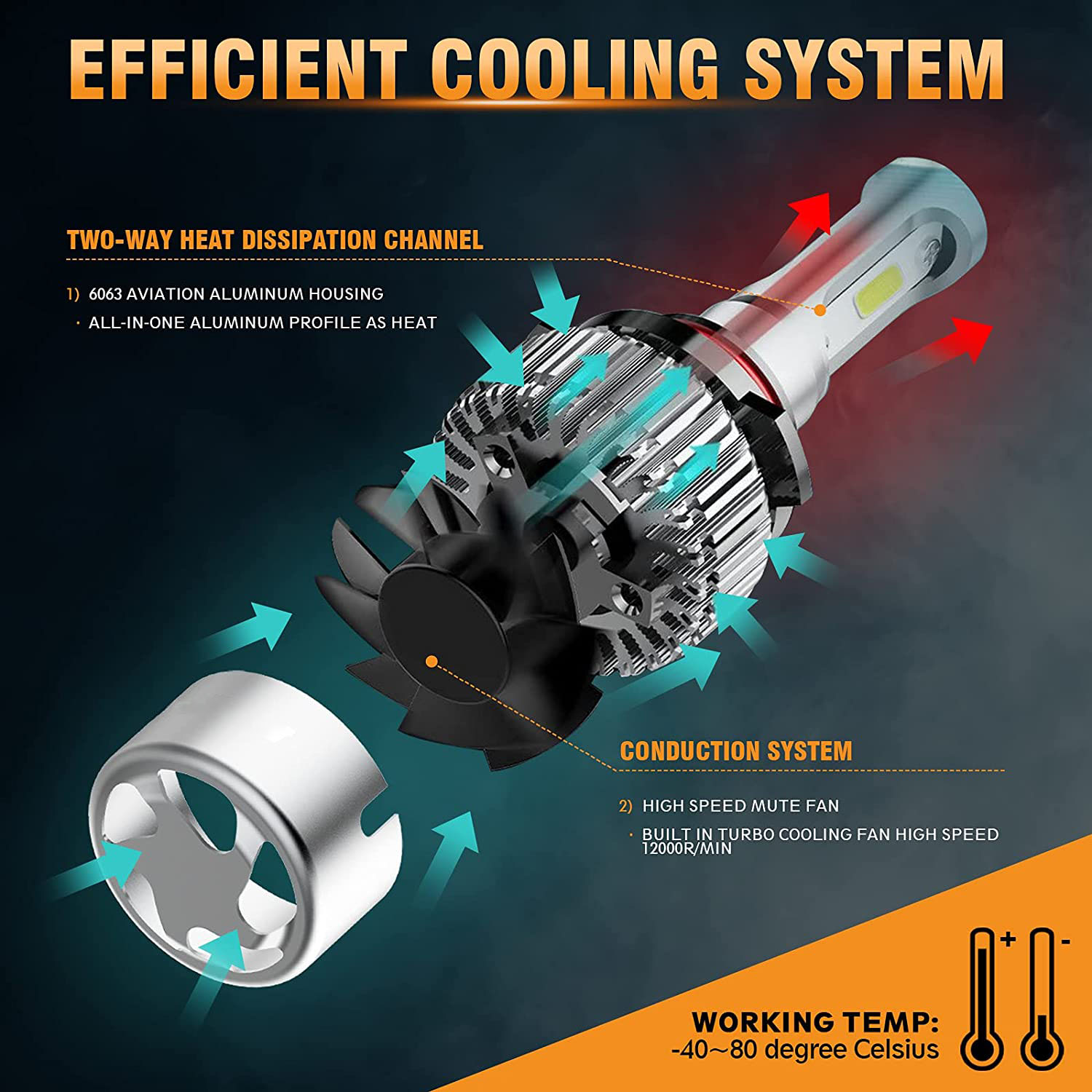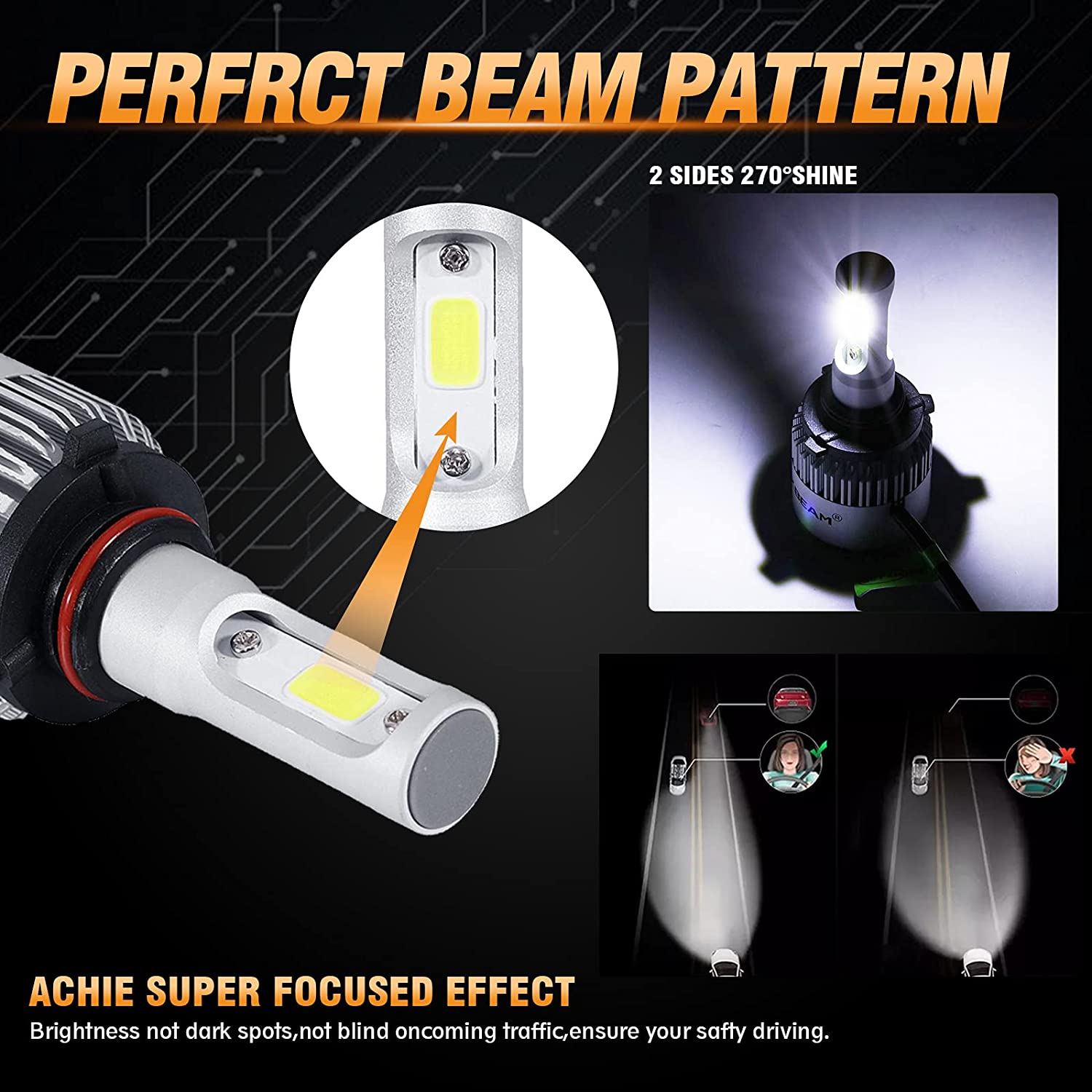 Specification: *Plug Type: 9005 + H11 + H11 *Operating Voltage: DC 9-32V(fit 12V,24V vehicles) *Color Temperature: Pure White 6000K - 6500K *IP67 rated water and dust seal,over 50000hrs lifetime *Beam Angle: 270 degree@low beam,360 degree@high beam *Material: Aviation 6063 aluminum profile *Operating Temperature: -40-80 degree Celsius *Usage: Headlight, Fog light (2pcs/set) COB Hi-Lo Beam LED headlight conversion kit *Latest COB chip light source,4 luminous faces(270/360 degree) no blind zone *Engineering beam pattern design throw more light on road evenly at appropriate angle without foggy light *Xenon white light reflect road paint/signs better to show clearer road situation during night driving *270 degree low beam angle with cut-off line,will not dazzle oncoming traffic *All-in-one heat conduction+high speed mute fan system keep the light bulb in appropriate working temperature *Built-in constant current CPU, instant full brightness without start-up relay Two-way heat dissipation channel 1.All-in-one aluminum profile as heat conduction system, 360 degree heat radiating 2.High speed mute fan (12000R/Min),high Air flow for faster cooling rate Package Included: 2 x 9005 LED headlight bulbs 2 x H11 LED headlight bulbs 2 x H11 LED fog light bulbs |