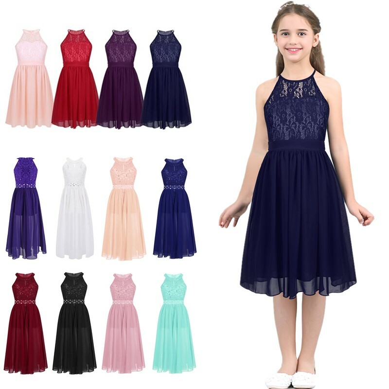 Sleeveless, round neckline, open back with criss cross straps. Top bodice is decorated with shiny sequins. A stitched bowknot at waist.