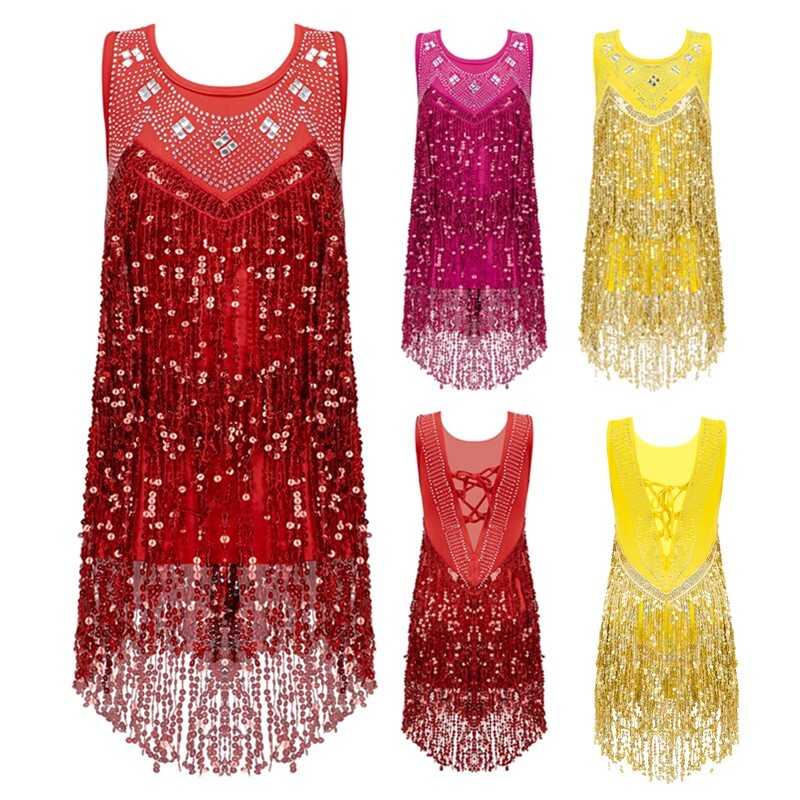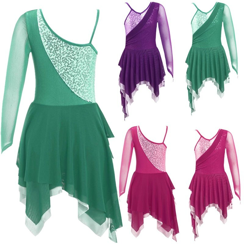 Dance leotard dress is made of polyester and sequins material, hand wash.