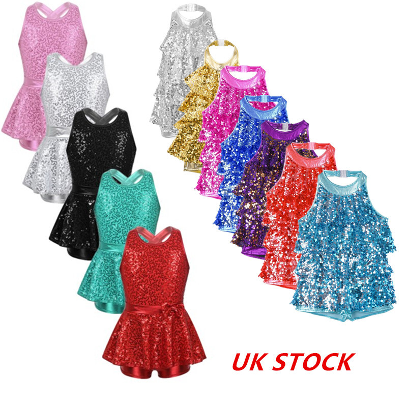 Kids Girls Sequins Ballet Gymnastic Biketard Unitard Athletic Sports Dancewear