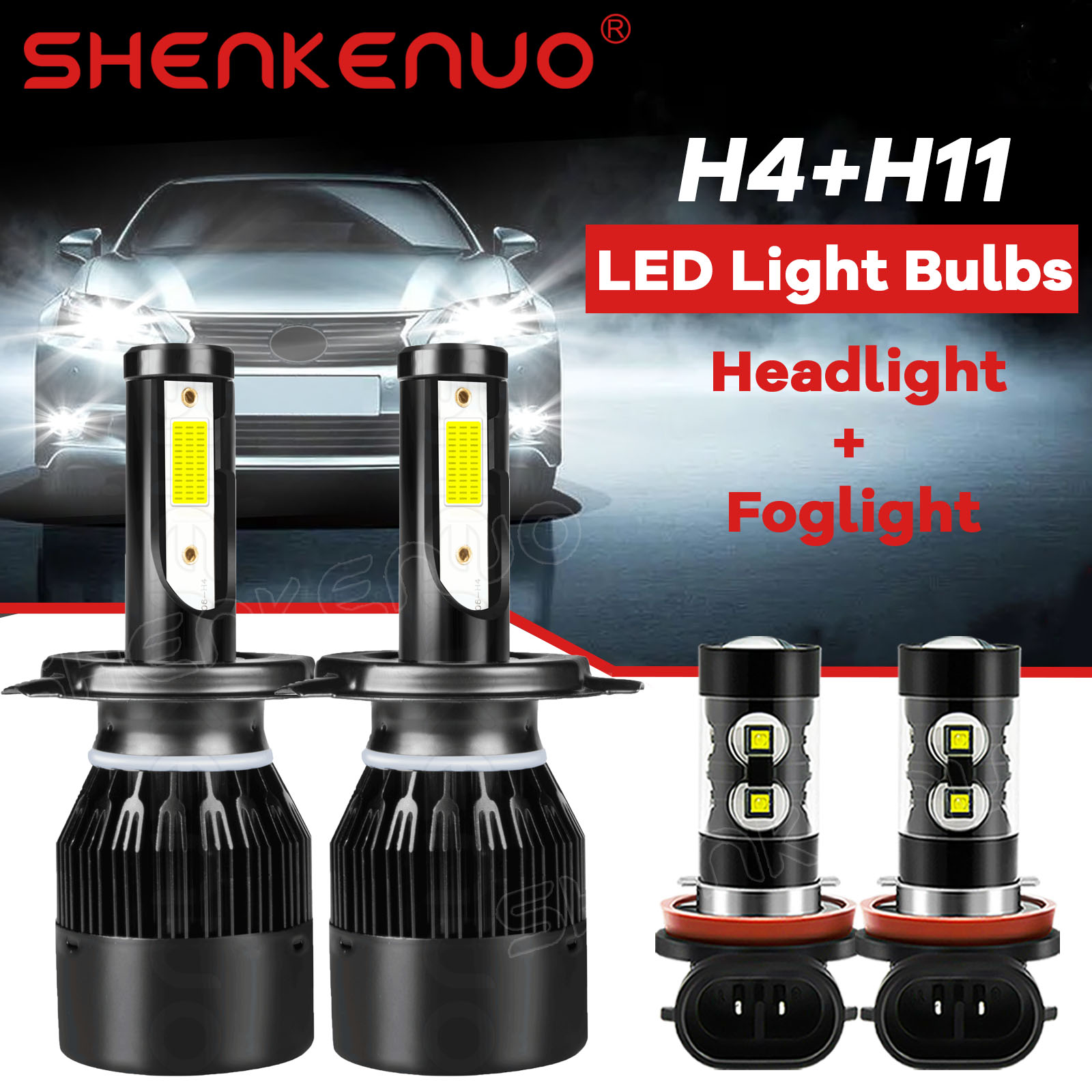Note: 1. This kit is for vehicles with Factory Halogen Systems, it will not work with vehicles with Factory HID.Pls confirm the item if it can matches your car before you purchase. 2. Please contact us before making any feedback, we will do our best to achieve your satisfaction. Compatible With: Headlight: ★Brand LED chip light source ★Plug Type: H4 ★Operating Voltage: DC 9-32V(fit 12V,24V vehicles) ★ Color Temperature: Pure White 6000K ★Usage: High Low Beam Headlight ★ LED light emission style: 2 sides ★ High efficient cooling Fan: Yes ★Heat Dissipation Theory: Heat Pipe Technology + A380 Aluminum Heatsink ★Canbus Driver: No (may not work with CANBUS vehicle) ★Waterproof:IP68 rated water and dust seal ★Beam angle:360 degree beam angle ★ Operating Temperature: -40-80 degree Celsius ★Over 100000hrs lifetime ★Number of Bulbs: 2 Fog bulbs: Plug Type: H11/H9/H8 Luminous Flux: 11000LM/set (5500LM/bulb) Operating Voltage: DC 12V(fit 12V vehicles) Color Temperature: 6000K White IP68 rated water and dust seal, over 50000hrs lifetime Beam Angle: 360 degree Material: Aviation 6063 aluminum profile Operating Temperature: -40-80 degree Celsius Usage: fog light Features: 100% New and Never Used Super bright COB chip(USA),360 degree clear beam no blind zone IP Rate: IP67 Built-in Cooling Fans & Ballasts , Smart Efficient Cooling System Fast Heat Dissipation,No Other Fans & Ballasts Required Built-in constant current CPU,instant full brightness without start-up relay High quality Aluminum heat dissipation ensures the secure temperature range Low Power Consumption than Halogen bulb, Energy Saving Low Voltage Protection, High Precision Constant Current driver Chip Shakeproof and Long lasting up to 50,000 Hours. Heat Dissipation Theory: Heat Pipe Technology + A380 Aluminum Heatsink Easy installation Package Included: 2x H4 9003LED HeadLights Bulbs 2x H11 Foglight NOTE: Please contact us first before you leave a negative feedback, we will try our best to solve problem for you. Thanks. |