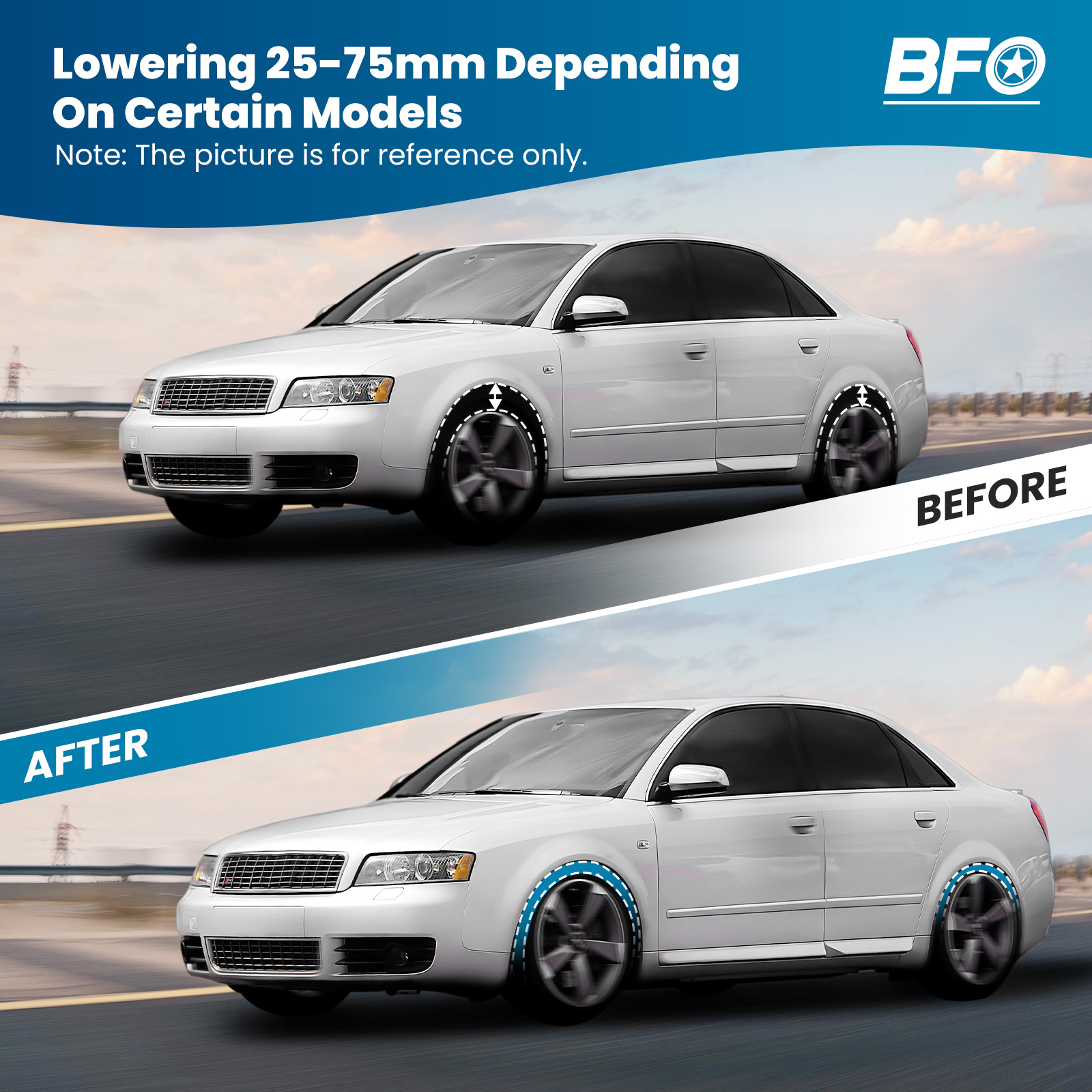 BFCO coil-overs are designed as entry-level for street use. It features height adjustable and adjustable camber plates (applicable for some vehicles), which offer you a lowered stance, and improved performance for your daily use vehicle.