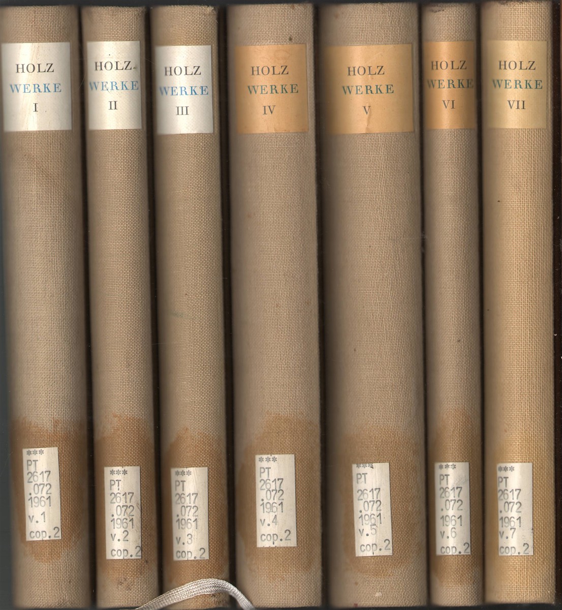 Exlibrary with usual library markings. 7 volume set. Some cover sunning. Text is written in German.