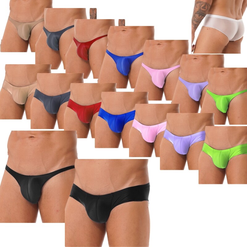 Mens Glossy Bulge Pouch Thongs Underwear Solid Color Low Waist Briefs Swimwear.