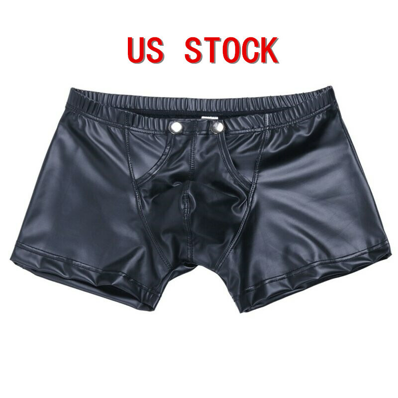 Mens U Neck Patent Leather Bodysuit Glossy Bulge Pouch Sleeveless Leotard.