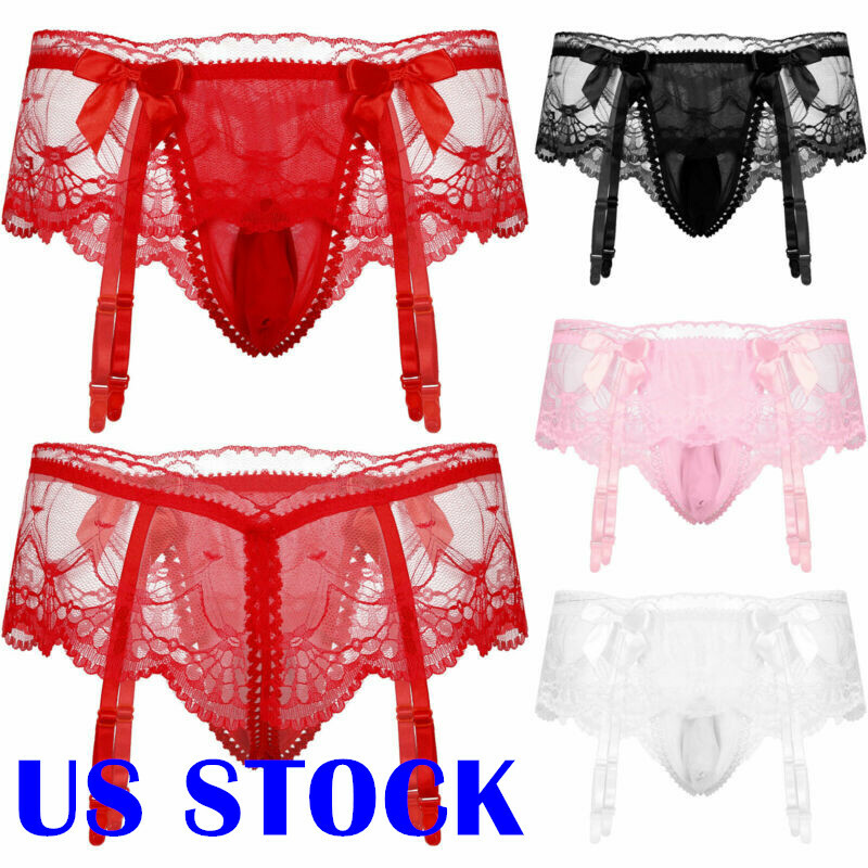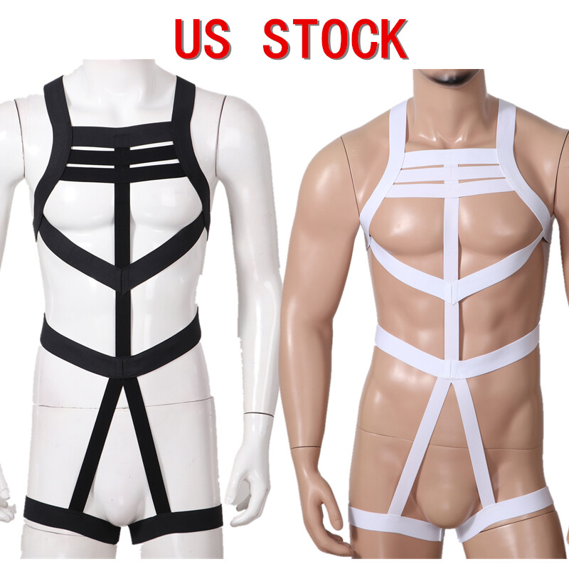 Men See-through Mesh Bodysuit Halter Neck Lace-up Crotchless Lingerie Underwear.
