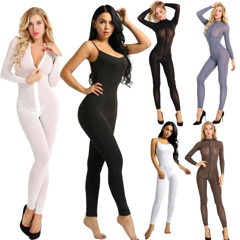 Women one-piece leotard bodysuit jumpsuit, see through design.