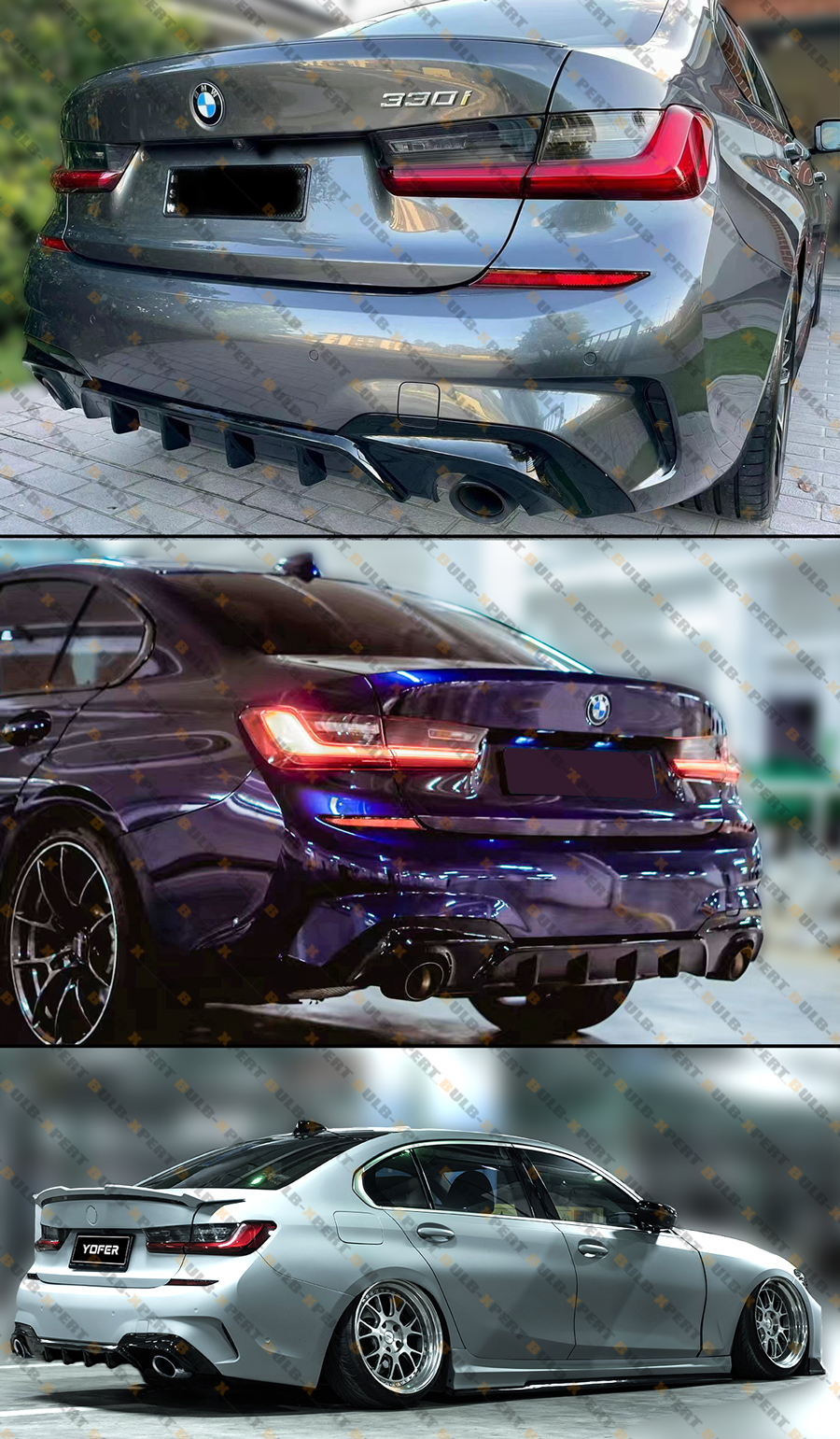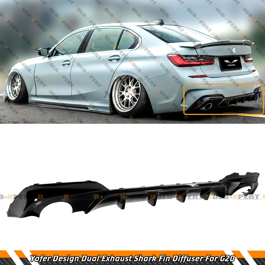 YOFER GLOSS BLACK DUAL EXHAUST REAR DIFFUSER FOR 19-22 BMW G20 3 SERIES M SPORT