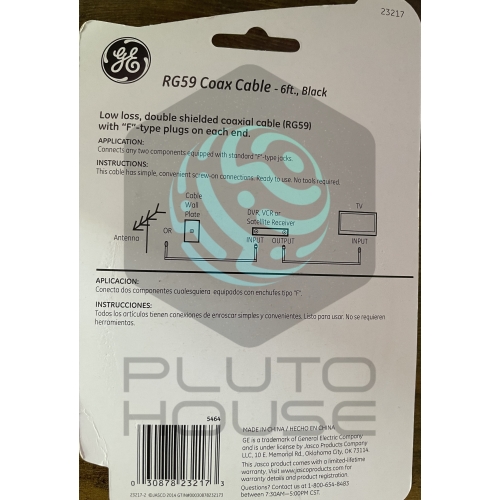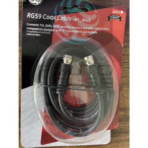 GE RG59 Coaxial Cable, 6 ft. F-Type Connectors, Double Shielded Coax, Input/Output, Low Loss, Ideal for TV Antenna, DVR, VCR, Satellite Receiver, Cable Box, Home Theater, Black, 23217