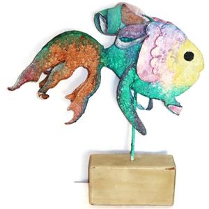 You have found the missing piece to your Art Collection! Here is a Large Decorative Sculpture from Artist Jacque Tatum, Laguna Beach (1926-2011). It is a Mixed Media of a Angel Fish. On a Metal Frame with Spray Type Plaster, and highlighted in Watercolors that is Mounted to a Wooden Base. Not Signed & Missing the Artist Card. The work is 5" by 22" across by 23 1/2" tall, and in very good preowned condition based on Minor Wear from Use & Age (see Pictures). Please see our Not Just China Store for more Fine Art & Collectibles.