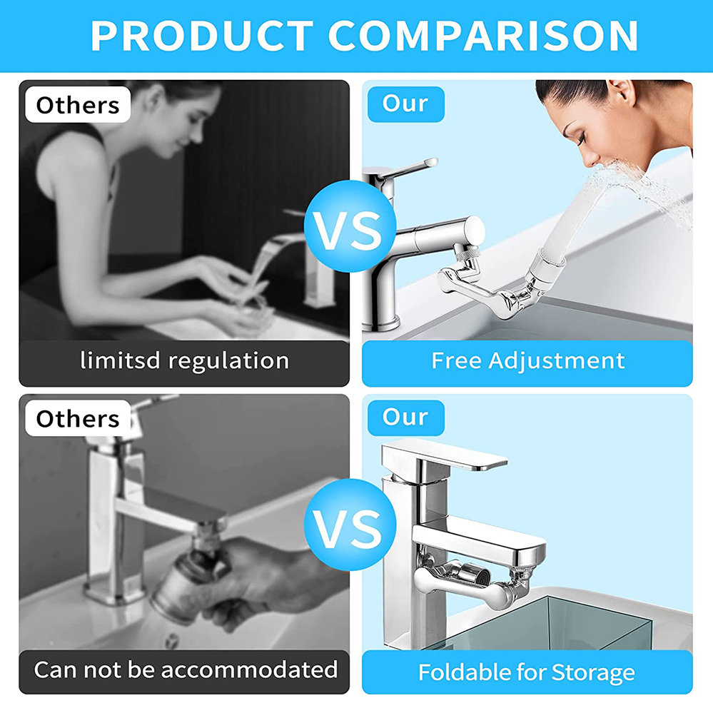 1080°Omnidirectional Rotation: The new robotic arm rotating faucet aerator can rotate 1080°and can be easily bent or folded at will so that the water can reach every corner of the sink, removable aerator and eyewash station. It’s widely used in sink faucet in the bathroom or kitchen.