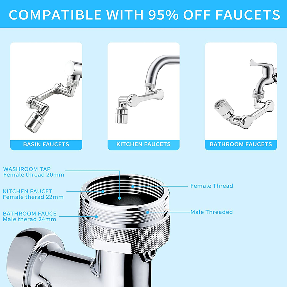 Easy Installation: The faucet is compatible with most faucets and can be installed directly on 20/22/24mm internal / external thread diameter faucets.