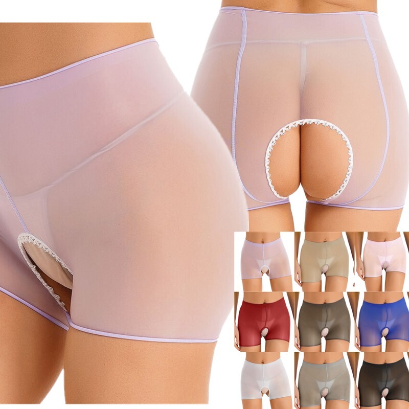 Womens Mens Crotchless Panties See-through Boxer Brief Underwear.