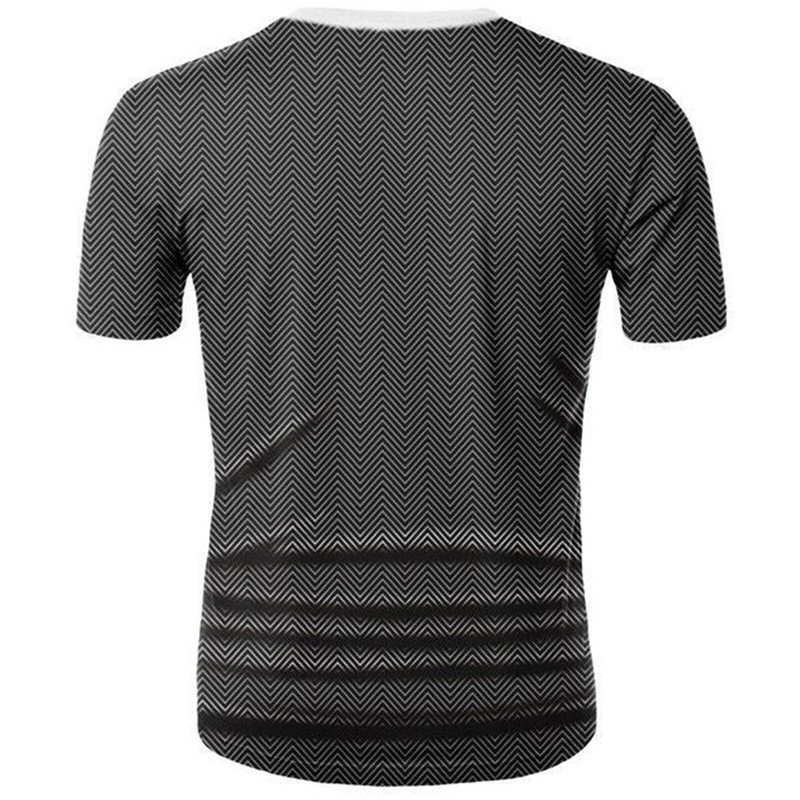 Mens fake two-piece 3D printed T-shirt round neck short sleeve T-shirt tie vest print for party cosplay performance costume.