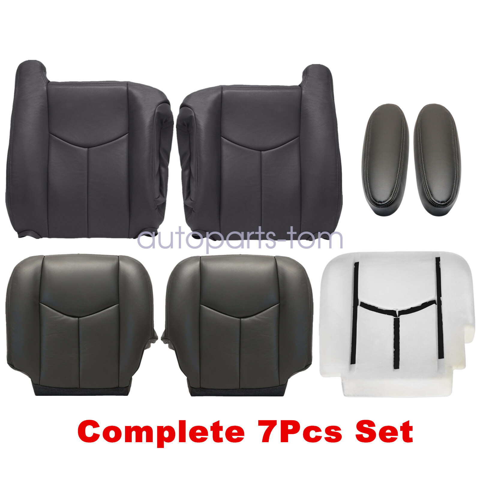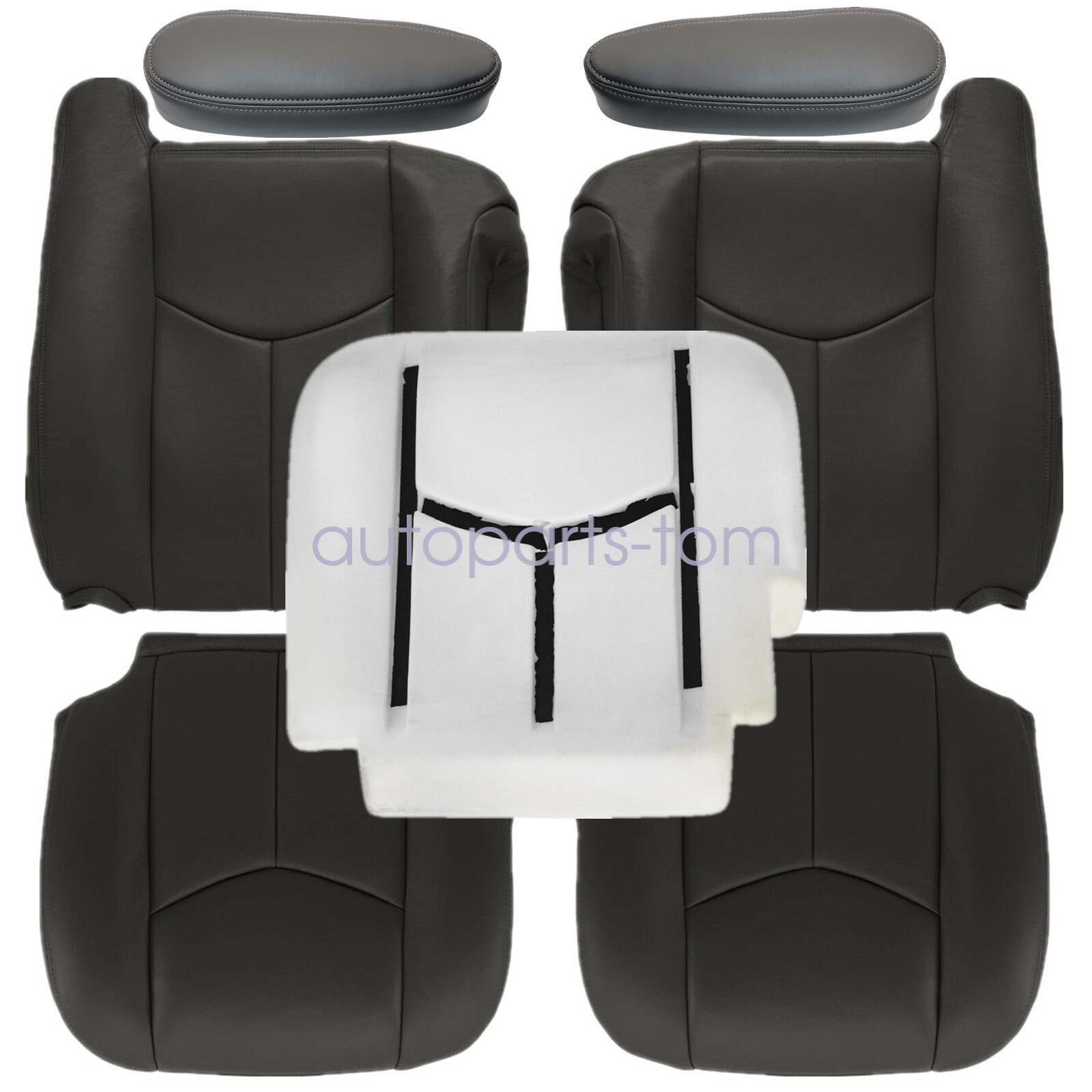 Driver & Passenger Replacement Seat Cover & Foam Cushion & Armrest Cover Dark Gray Fits 2003-2006 Silverado, Sierra, Avalanche, Manual & Powered Seats