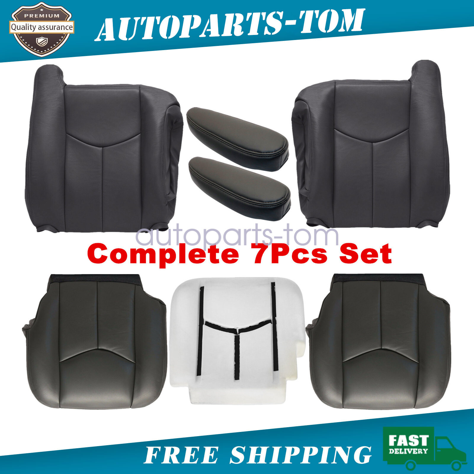 Name: Driver & Passenger Side Leather Seat Cover & Foam Cushion & Armrest Cover