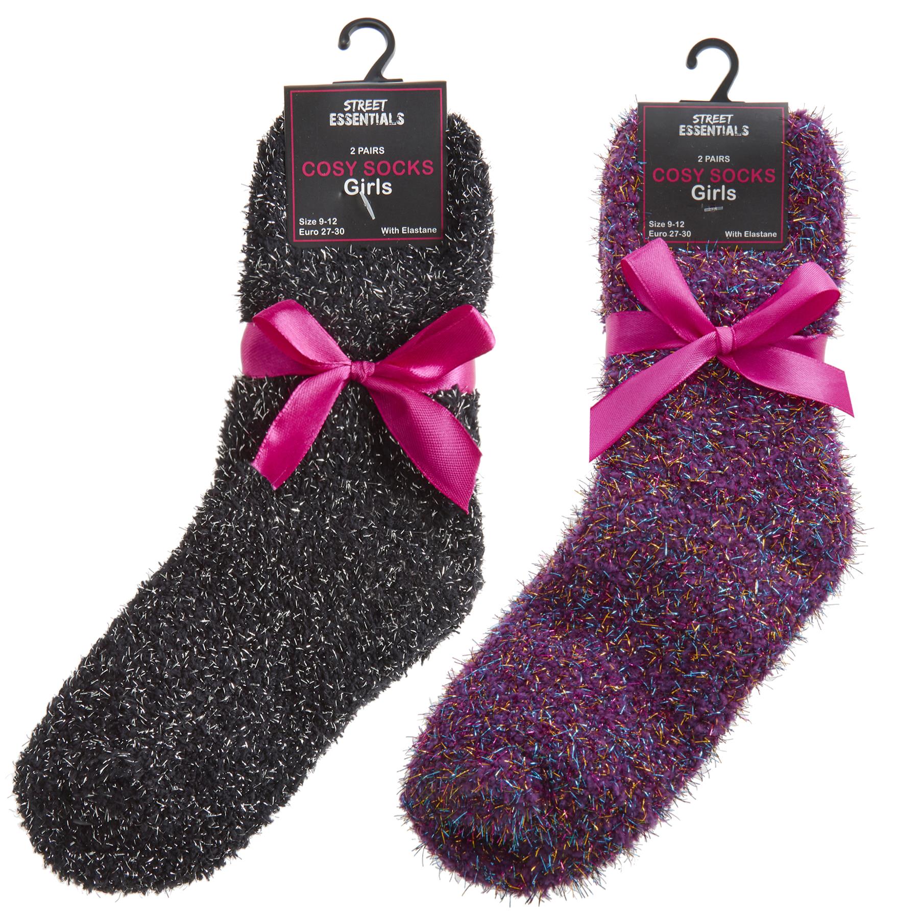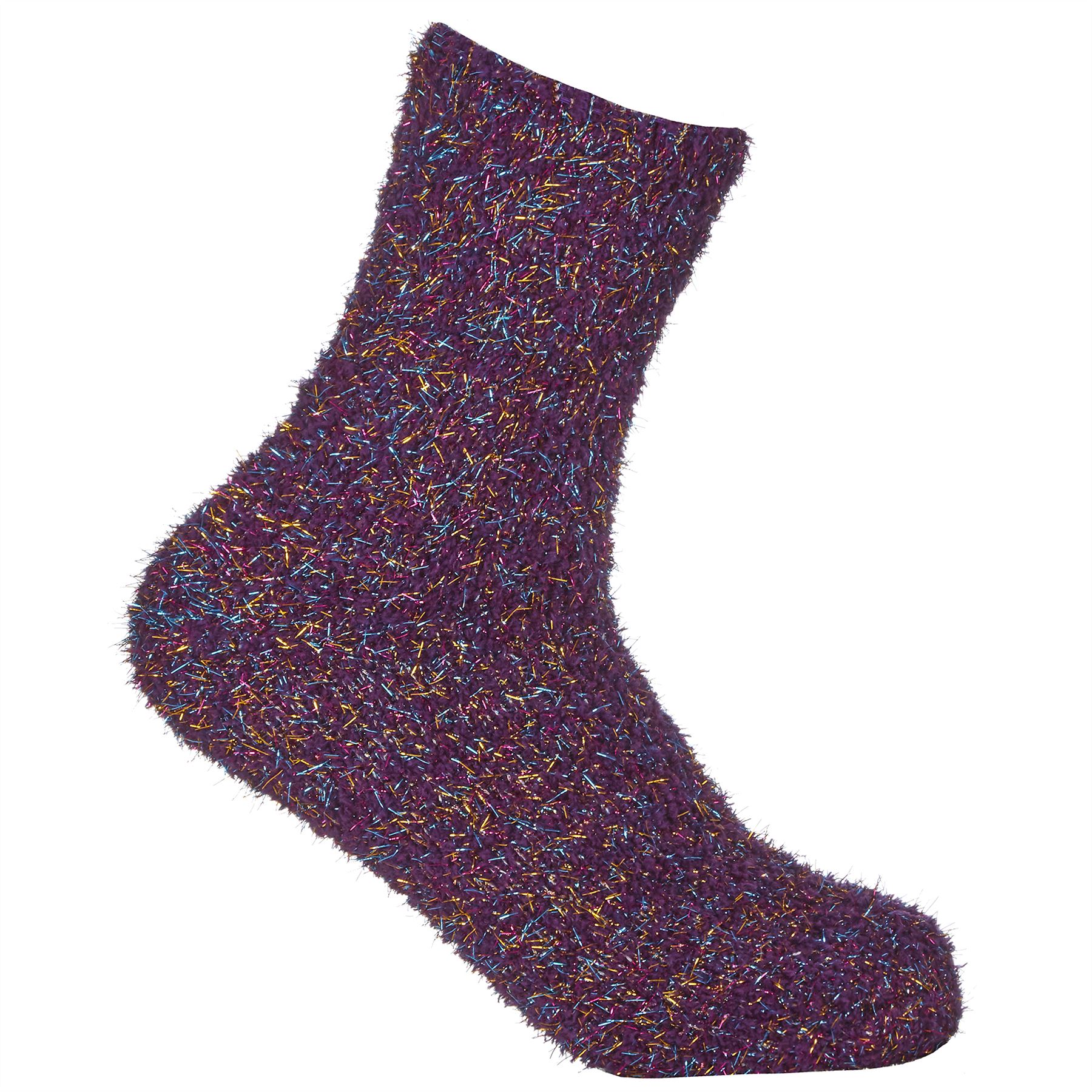 Fluffy Slipper Glitter Socks Girls Bed Sock 43B759 Black/Purple - 4 pairs