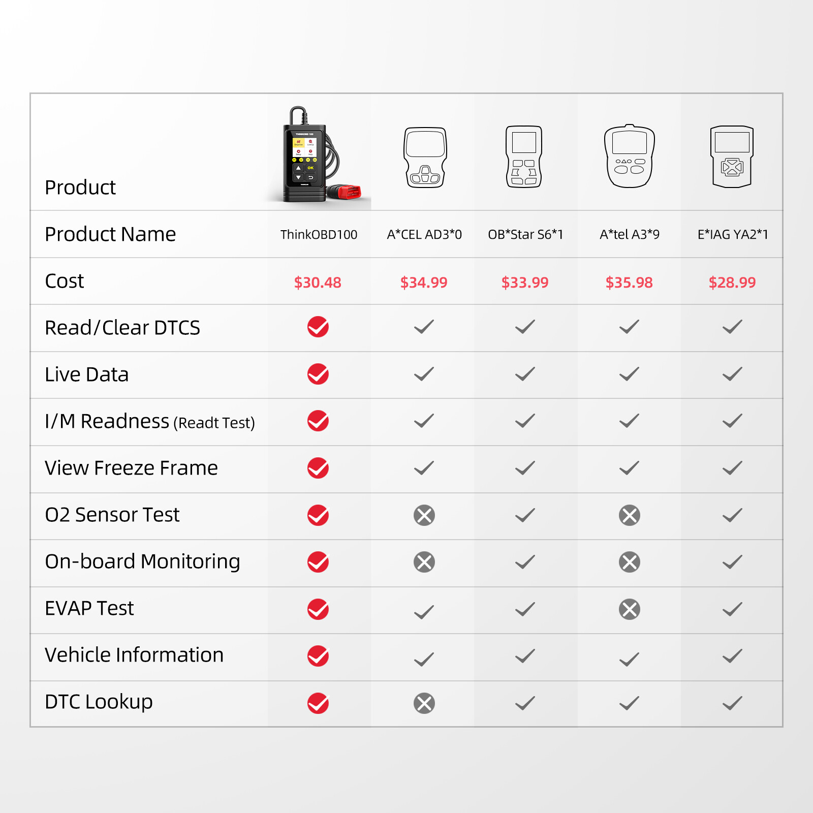 THINKOBD100 includes OBDII full functions and cost-effective.It is worth way more than it costs.