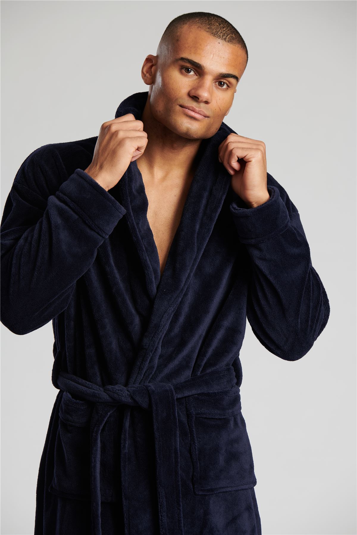 Langärmliger Morgenmantel aus weichem Korallenfleece für Herren