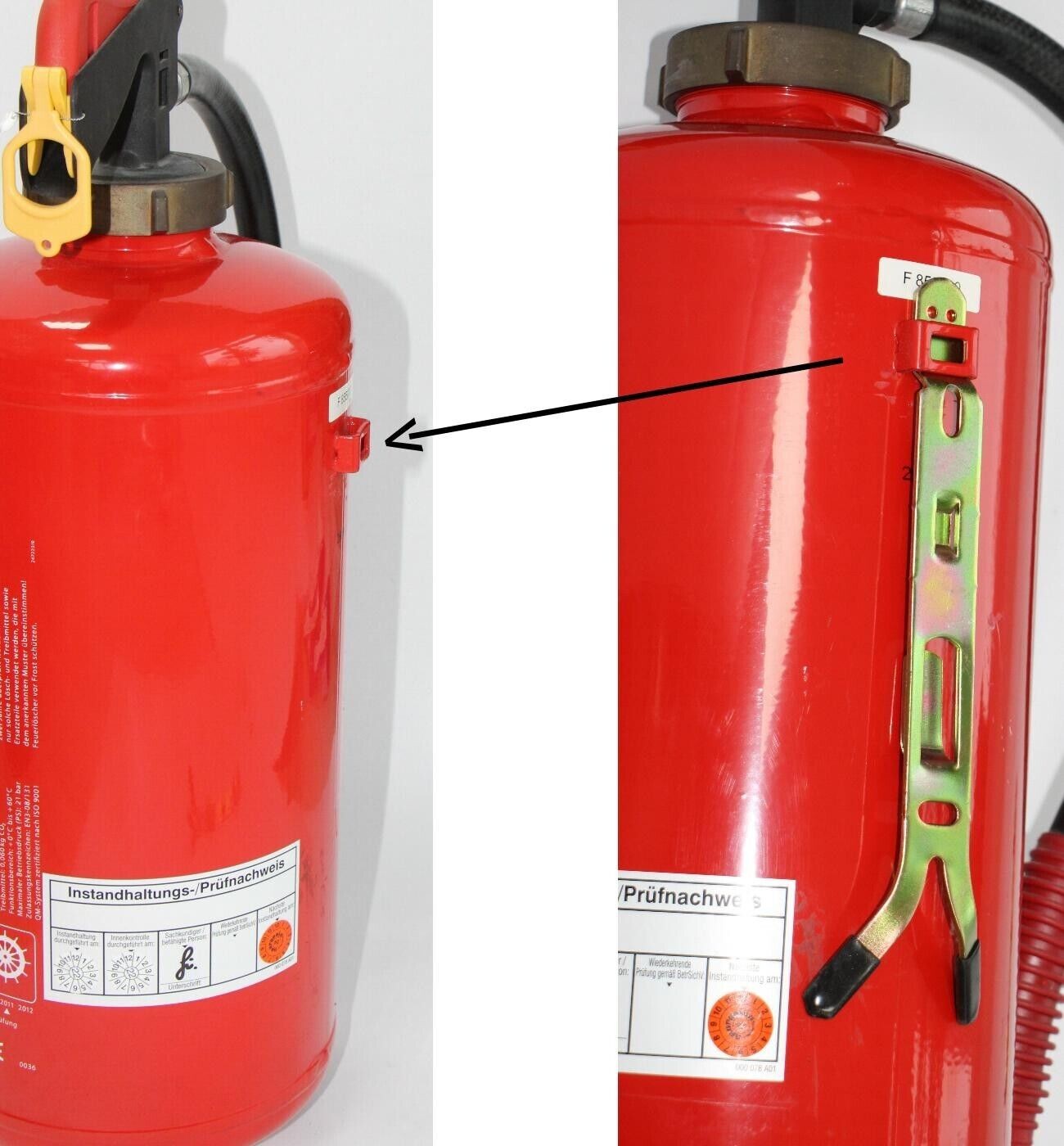 Wenn ihr Feuerlöscher hinten eine oder zwei Halter hat, passt dieser Wandhalter für die meisten Feuerlöscher.
