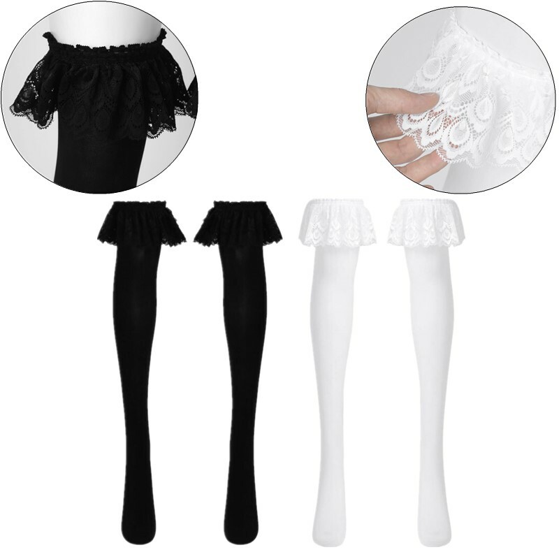 Solid color stockings for women, thigh high length, lace trim with delicate floral pattern .