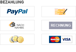 Die Lieferung erfolgt gegen Vorkasse, Nachnahme, Barzahlung bei Abholung, Kreditkarte, Sofortüberweisung oder Paypal.