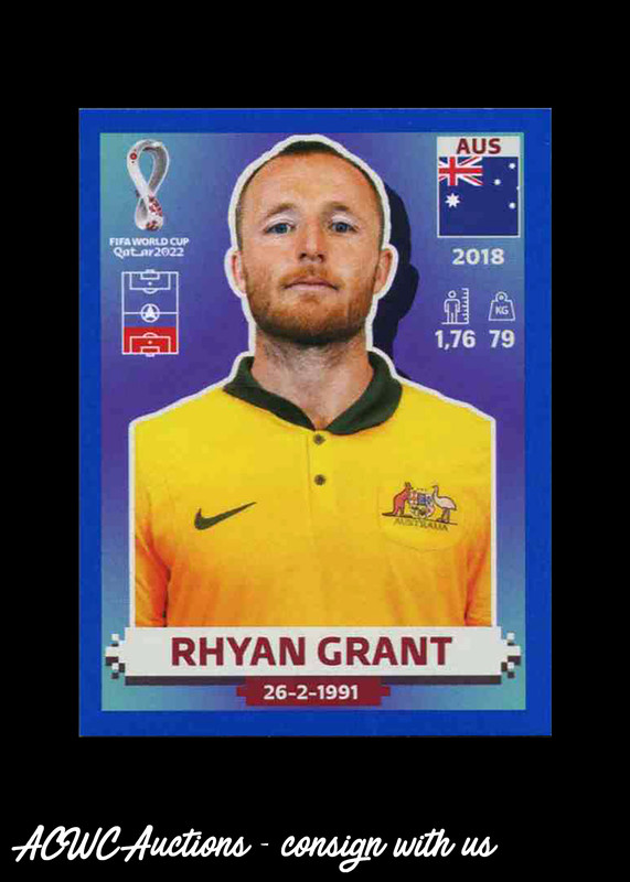 2022 FIFA World Cup Stickers Blue #AUS 7 Rhyan Grant (Australia) - This card is not graded; but in our opinion in NM or better. Ungraded cards are placed in a card sleeve then top-loader and shipped in an envelope.