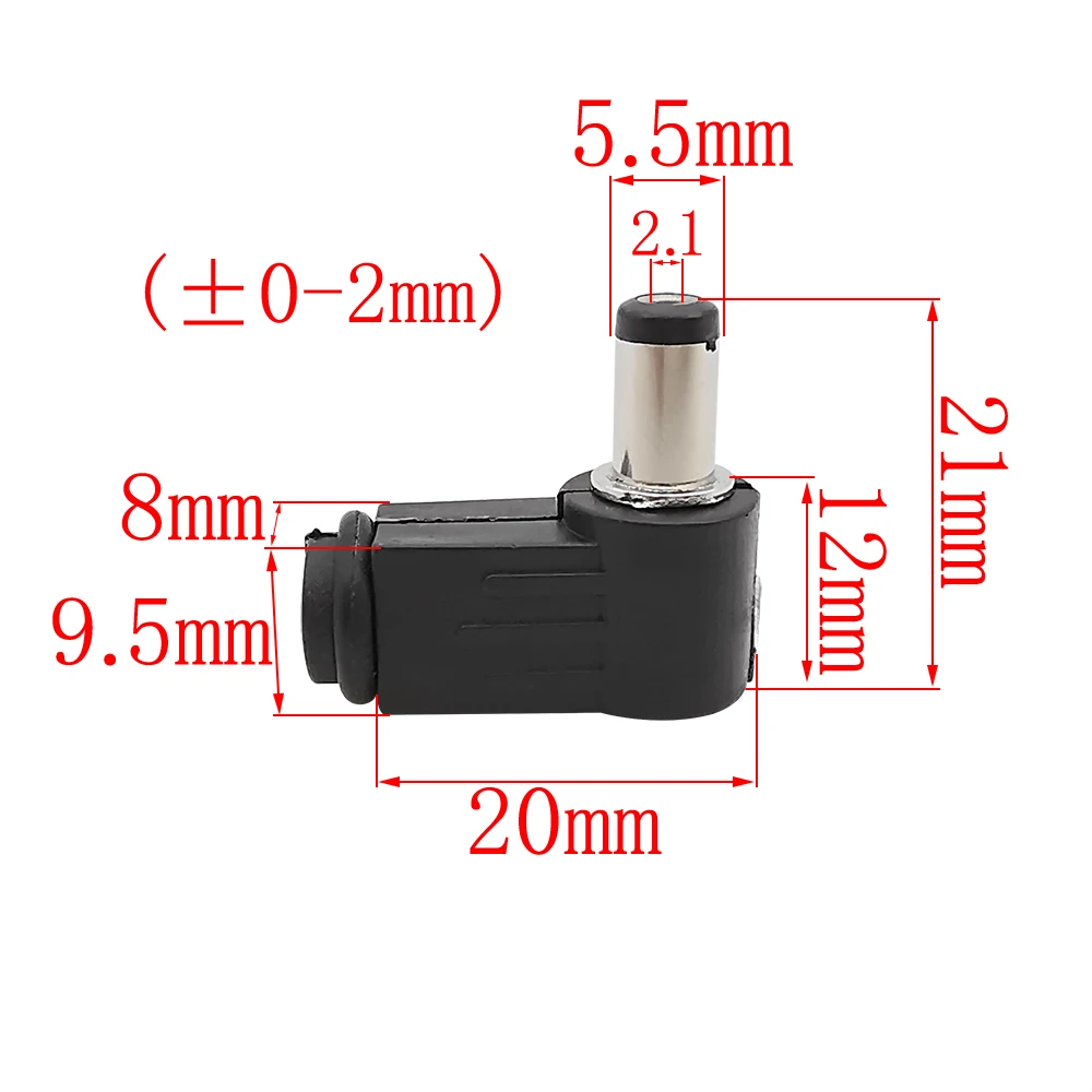 - Connecteur mâle d'alimentation cc 90 degrés 5.5x2.1mm