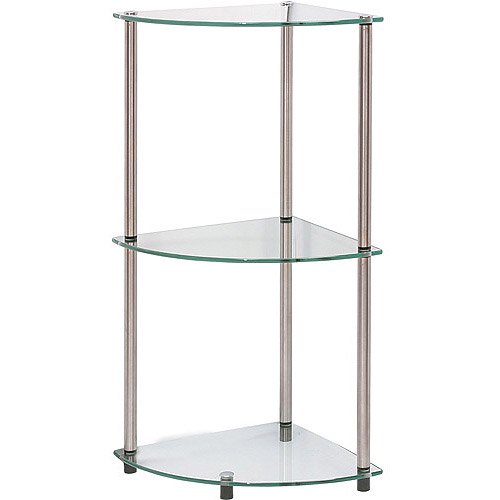 Display all of your favorite books or collectibles on the YAOJIANG 3 Tier Corner Shelf. It allows you to utilize that unused corner space in your home while showing off so many of your favorite items. Place this glass bookcase in any room as a great combination of function and form. It is made with materials that are well suited to high-moisture environments for long-lasting durability. The polished tempered glass and stainless steel-clad poles will not warp or rust, so it is suitable for any area. Clean the glass shelving with any household glass cleaner for easy maintenance. The bookcase requires no tools and is simple to assemble so you can get it set up and ready to use right away. With a sleek style that easily matches with all types of home decor, the corner bookcase is a wonderful way to showcase your photos, trinkets and much more.