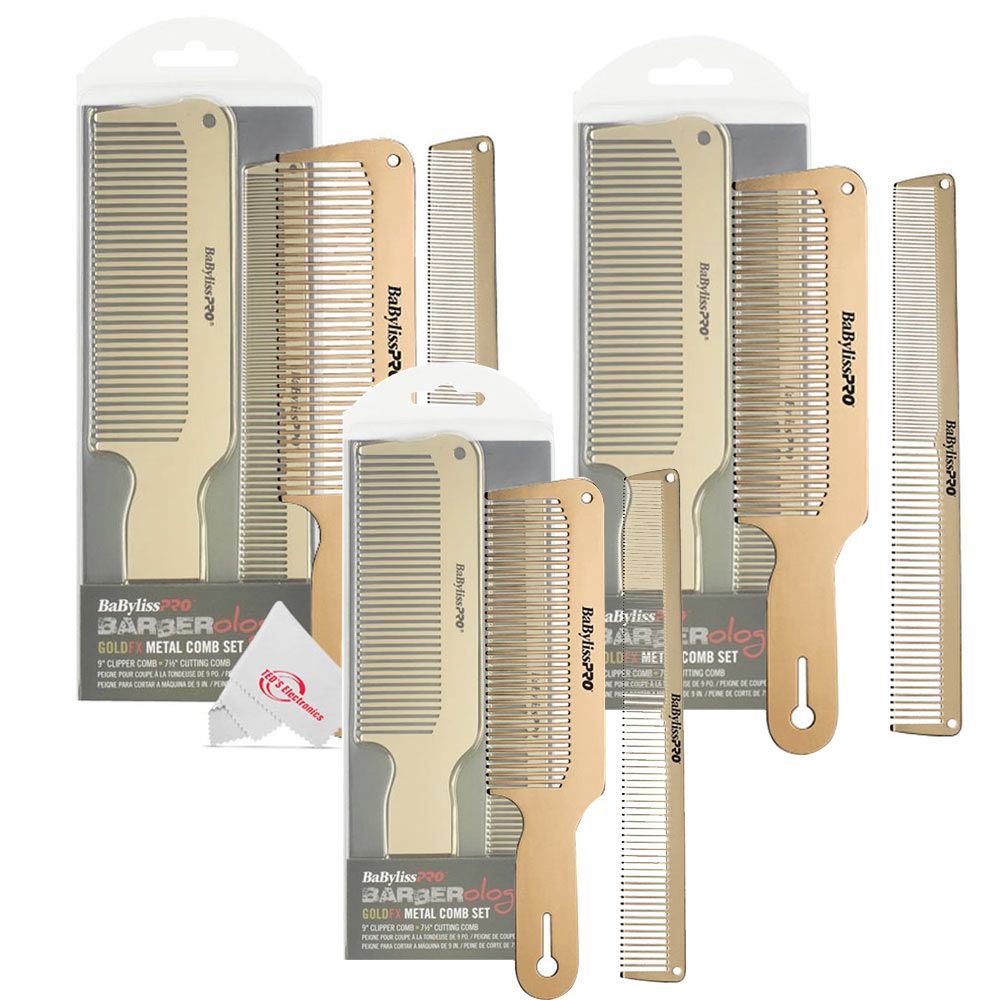 Three Packs BaByliss Pro Barberology GoldFX Metal Comb Set 9" Clipper Comb and 7.5" Cutting Comb Gold