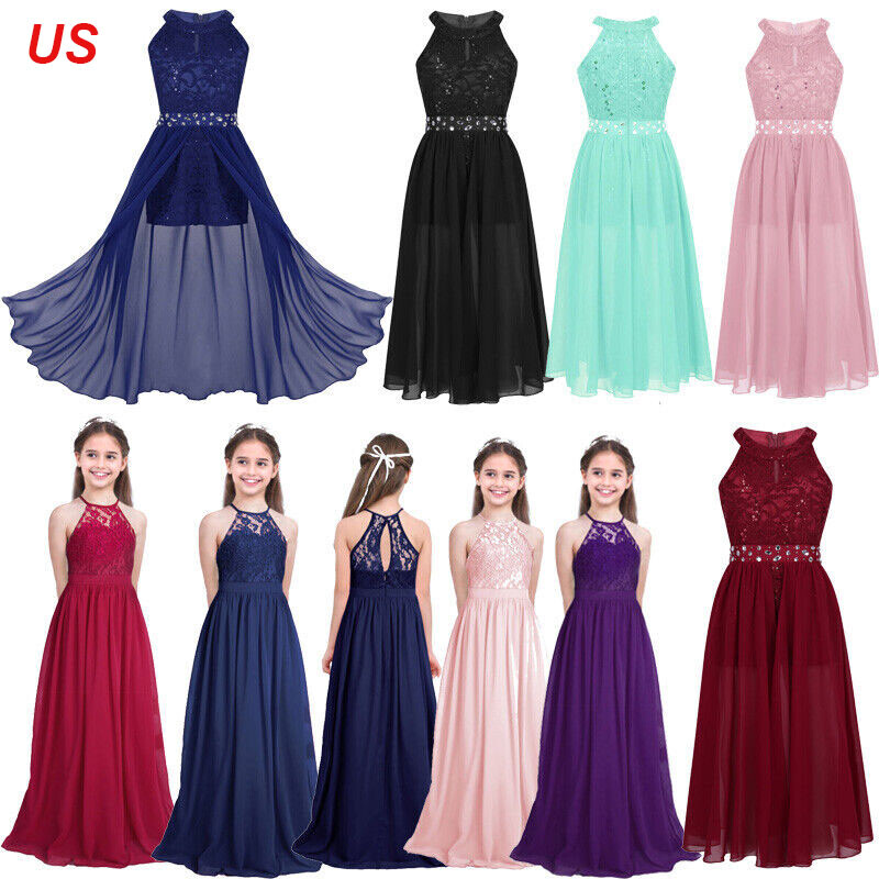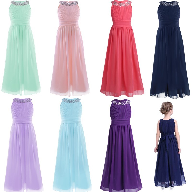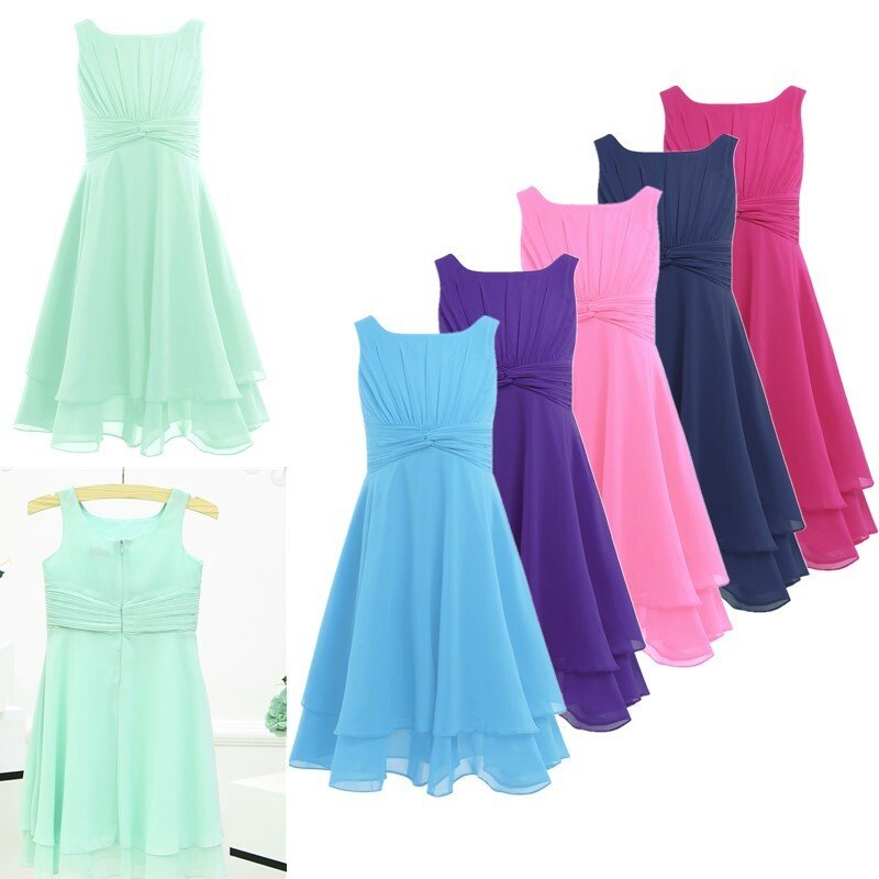 1 layer maxi length chiffon overlay is attached around the waist. Full lining. Beautiful and stylish dress for your girl.