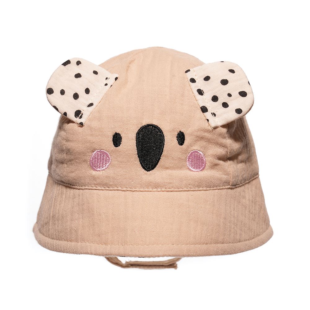 🐻 Style - Baby animal cotton bucket hats with velcro chin strap, available in 3-6 Months or 6-12 Months. These adorable sun hats feature a cute animal face embroidered on the front with 3D ears attached.