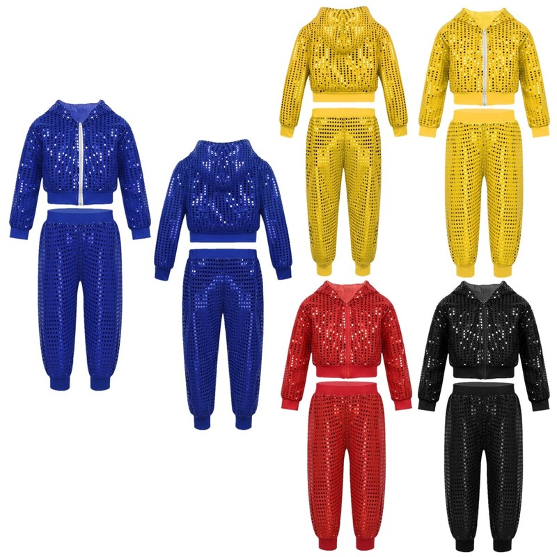Patchwork design. It is a fashionable jumpsuit for skating dance in stage performance.
