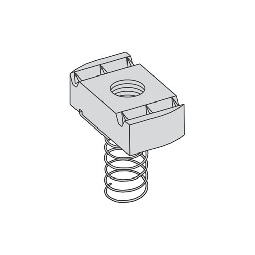 Channel Nut; Type With Spring; Nominal Diameter 3/8 Inch; TPI 16; Thread Series UNC; Thickness 3/8 Inch; Material Carbon Steel; Material Specification ASTM B633; Finish Zinc Electroplated; Pull-Out Strength 1100 Pound; Slip Strength 800 Pound; Used On B22/B24/B32 Channel