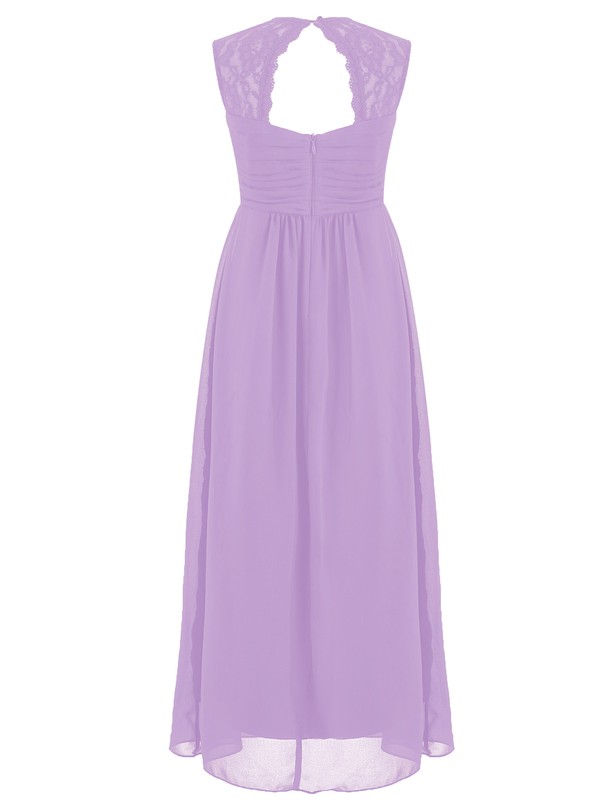 Kids girls lace patchwork chiffon party dress sweetheart lace strap ruched cut-out back high waist floor length dress.