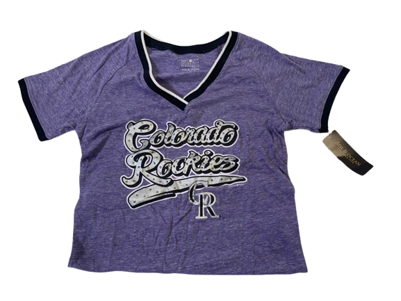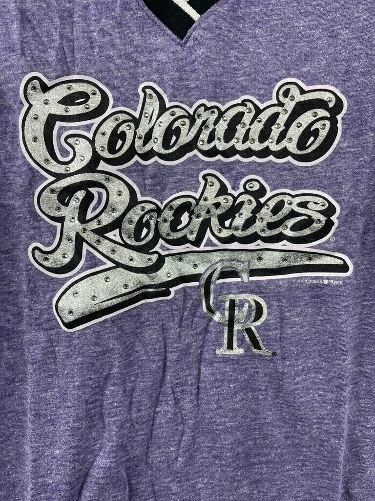 5th & Ocean Women's Colorado Rockies Opening Night Tri-Blend V-Neck-Purple,Medium