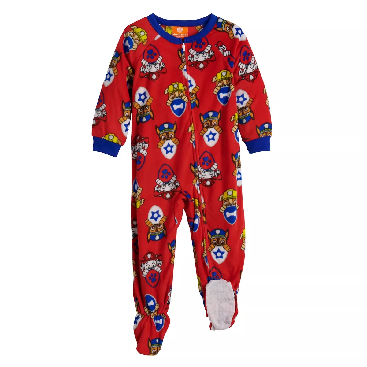 An ultra-soft, warm and cozy fleece pajama sleeper. Featuring his favorite Paw Patrol characters, Marshall, Chase and Rubble. A colorful and fun print throughout with bright blue rib-knit trim. Front zipper and non-slip, textured foot soles.100% polyester.