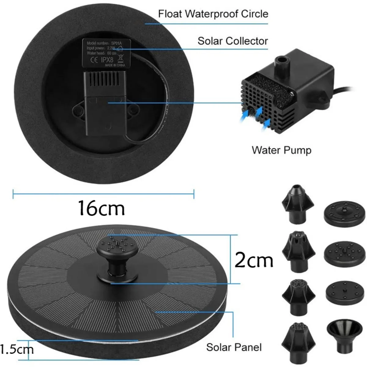 This patio water fountains outdoor is perfect for bird bath fountains, garden, pool, fish tank, pond, water circulation for oxygen. Make your garden look more vivid and interesting decorated with our solar water pump.