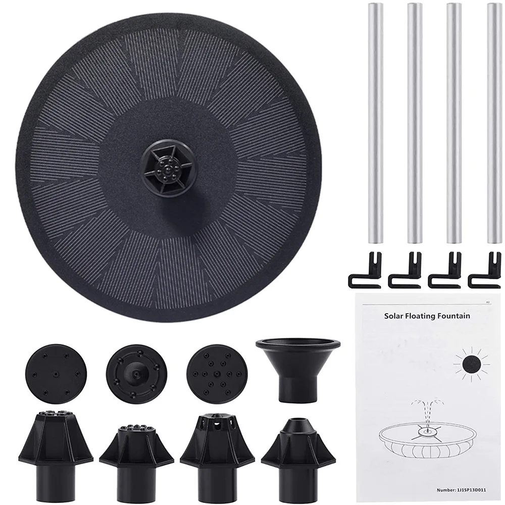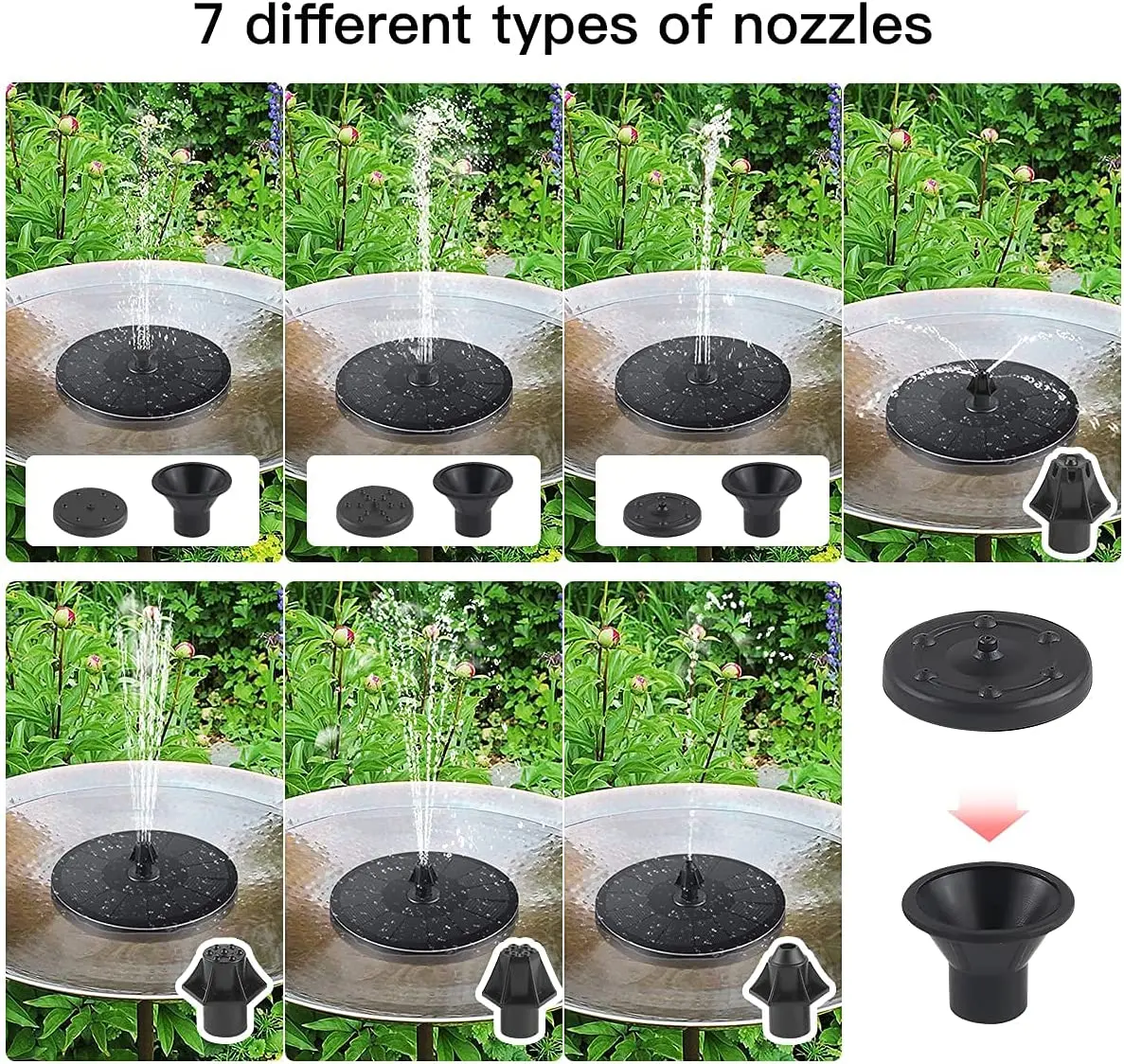 Solar Water Fountain Pump For Bird Bath 2.2W Solar Powered with 7 Nozzles & 4 Fixers Floating Solar Fountain Garden Pond Tank