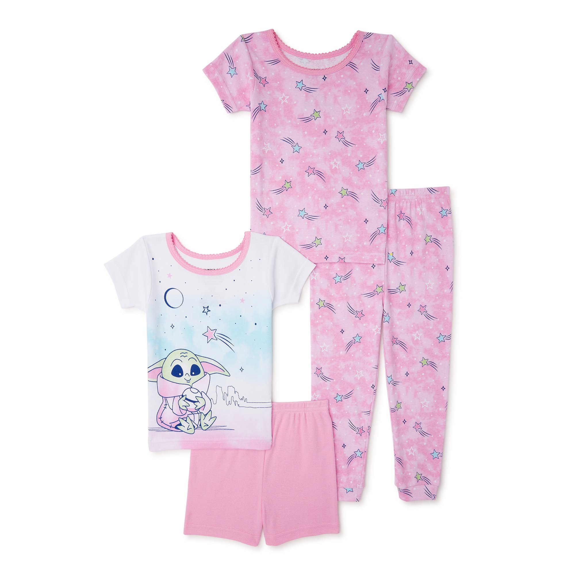 This cozy cotton pajama set features super cute graphics of Grogu and a fun and colorful print.