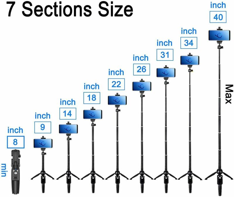 Lightweight aluminum material,it weight 0.5 pound.Extendable long length telescoping between 8''- 40''.Suitable phone width is 5.2-10.5CM.