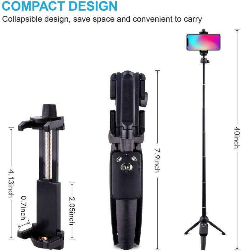 【Upgraded All-in-One Compact Design】Upgraded 360° Rotation Photography makes you rotate and select horizontal or vertical camera mode to obtain the best angle. Just simply twist the cradle head or phone holder to take photos. Moreover, the 3-in-1 selfie stick with tripod can make video call or live broadcasting.