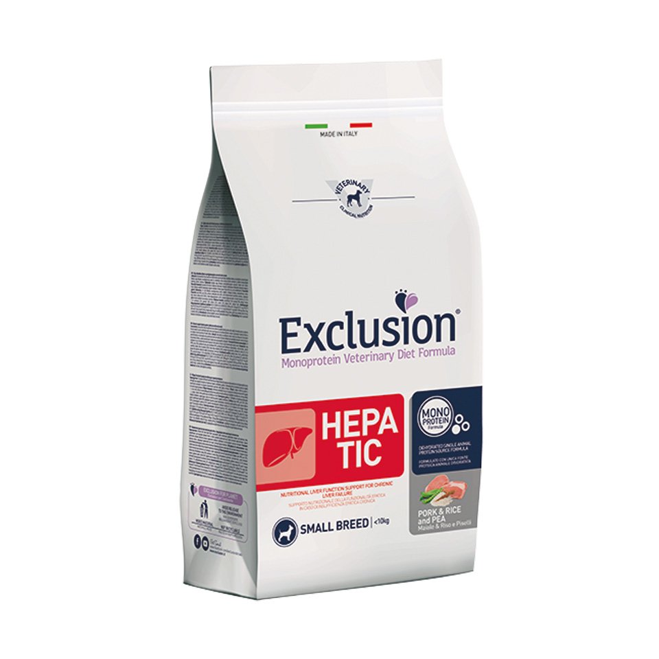 EXCLUSION | Secco | CANE | Hepatic | ADULT SMALL MAIALE RISO E PISELLI | 2 Kg