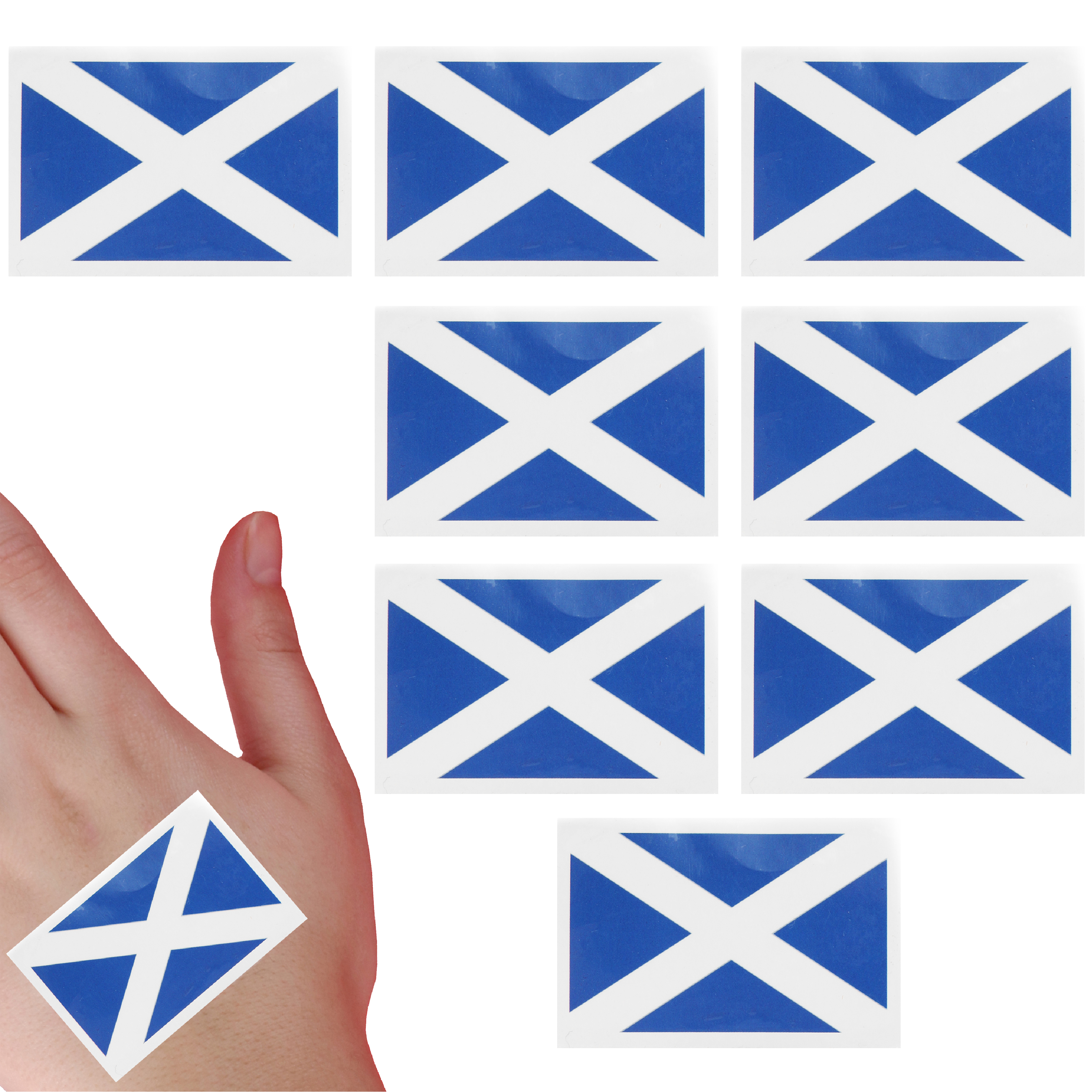 AVAILABLE IN MULTIPLE PACKS: Your Scottish Flag Face Tattoos are available in multiple packs from Pack of 4, Packs of 8, and Packs of 12 Flag Tattoos to share or use with your friends to celebrate!