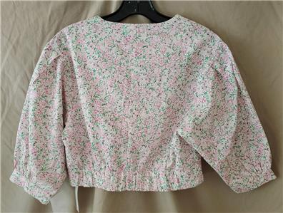 Top was bought in London and tag says UK size 8, but it fits a small. PLEASE CHECK THE MEASUREMENTS below carefully. Made of 100% cotton, no stretch. Pullover top, v-neck, puffed sleeves, elastic at bottom. Excellent condition. No holes or stains. From a smoke-free home. Please check my store for more unique items.
