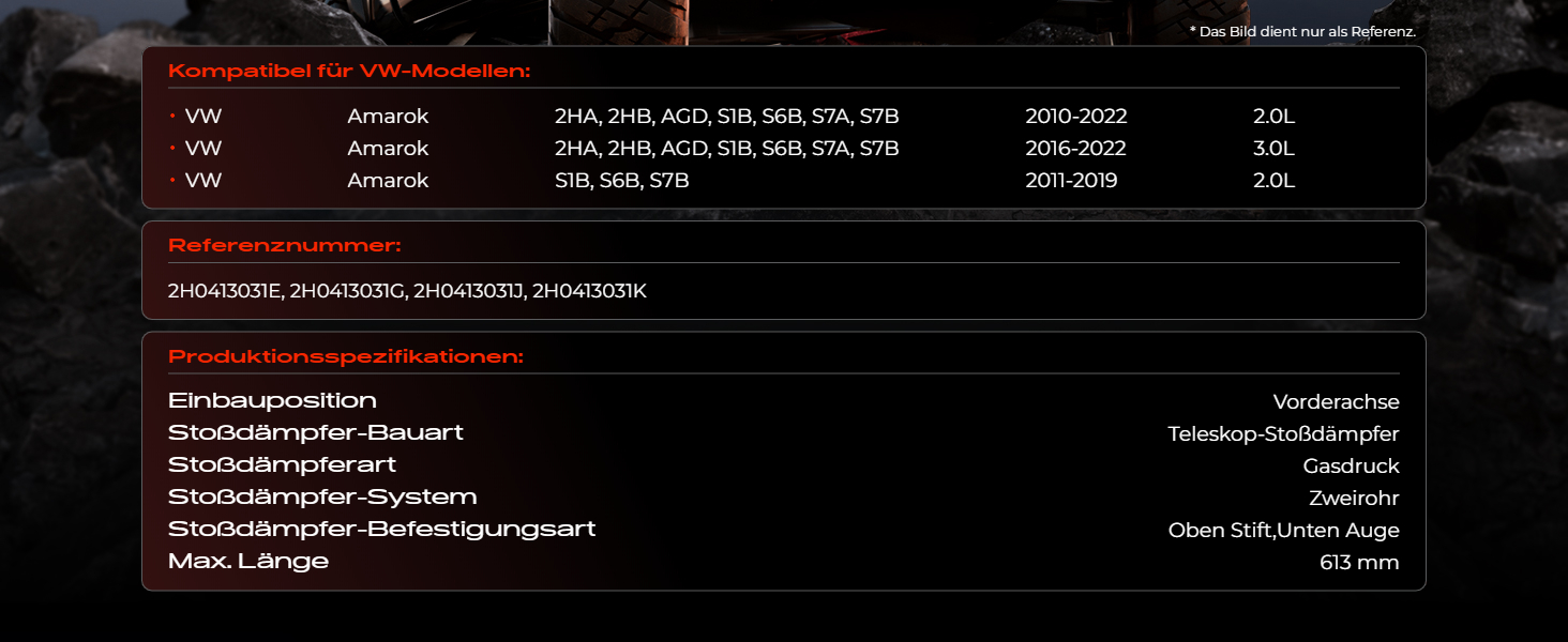 2x Stossdämpfer Gasdruck Vorderachse für VW Amarok 2HA 2HB S1B S6B S7A S7B