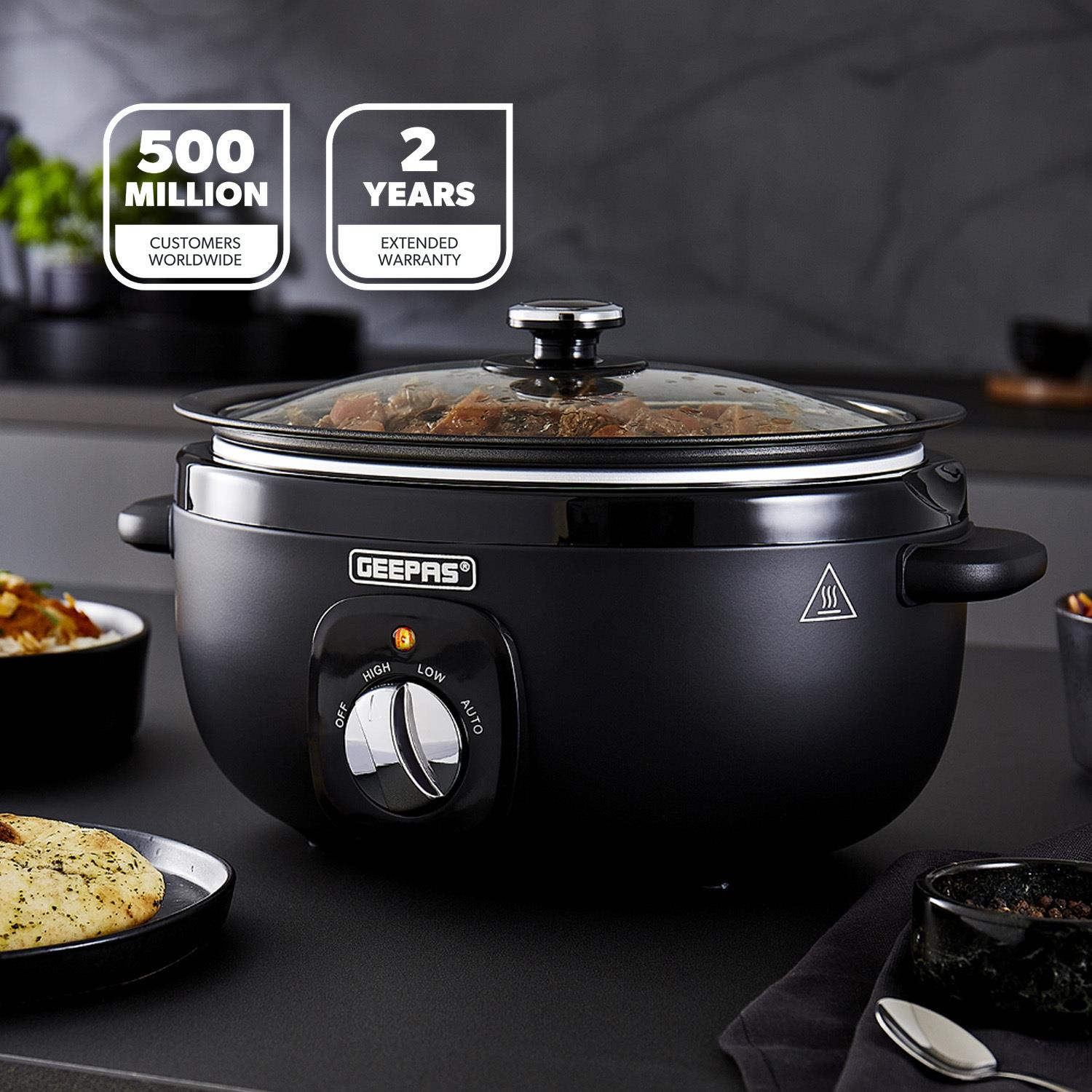 ✅ 3.5L SLOW COOKER -- With a capacity of 3.5 litres, Enjoy delicious curries, tagines, stews, casseroles, jambalaya, soups and even desserts.