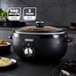 ✅ MATT PREMIUM DESIGN, COOL TOUCH HANDLES -- Its modern matt black powder coated finish that you can write on using chalk and you have a thoroughly modern, versatile appliance that will enhance any home at mealtimes. Made from a cool touch material so you can safely handle and serve straight to the table.