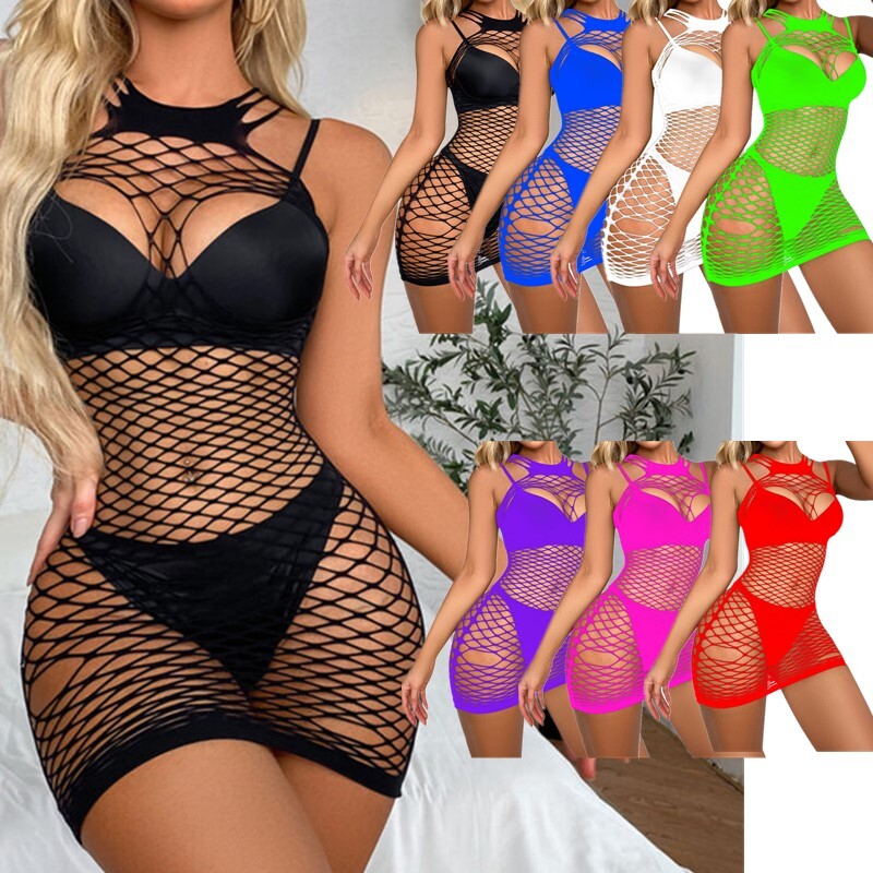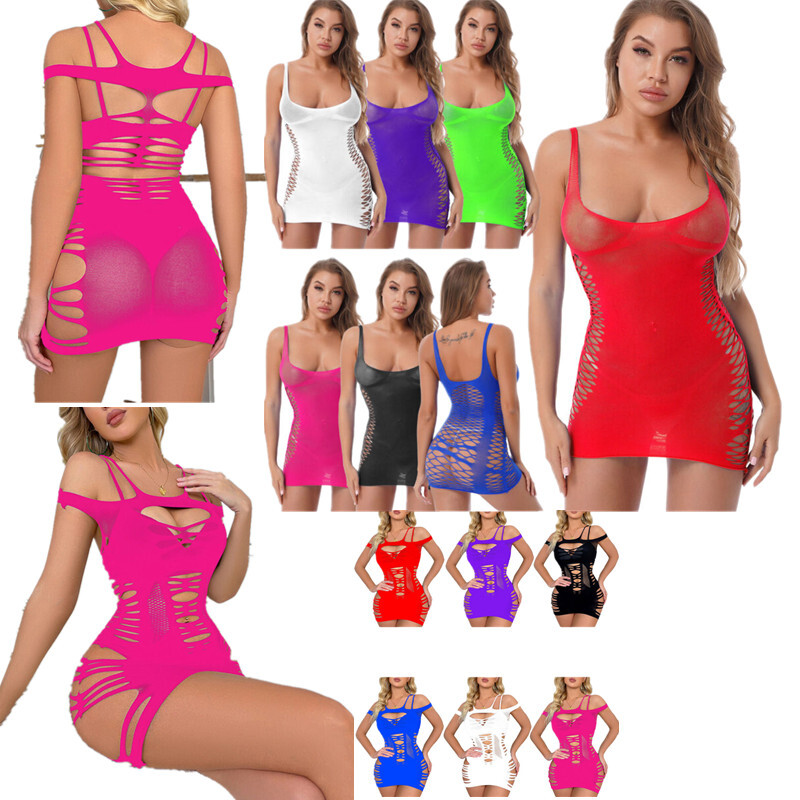 Womens Scoop Neck Wide Shoulder Strap Bodycon Dress Hollow Out Mini Dresses Lingerie Nightwear.
