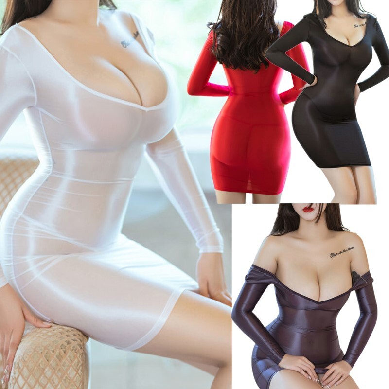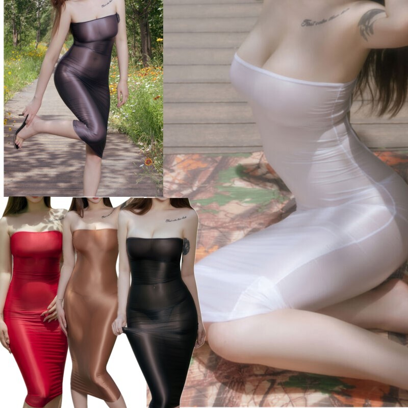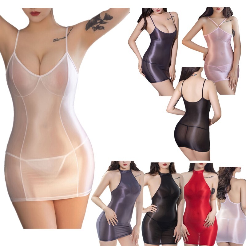 Women’s glossy bodycon dress, adjustable spaghetti straps for a better fit. Come with low rise T-back.